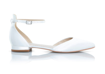 Otra opción para los zapatos planos de novia, es el calzado de novia de punta fina. Los zapatos planos de mujer, no solo hacen que la novia luzca reservada y clásica, cumpliendo con el código de vestimenta; sino que además aporta elegancia de un modo un poco informal.
