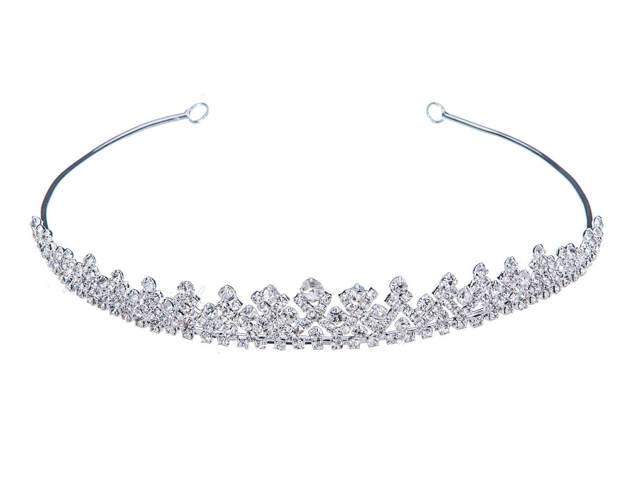 Elegant, this rhinestone tiara is perfect for the modern or classic bride, all set in beautiful silver plating.