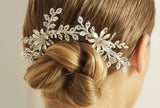 Floral headdress made of rhinestones. Beautiful headdress with two flowers that give off a branch on each side, all designed with rhinestones, which make this unique piece to wear on your wedding day.