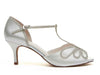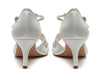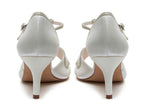 Crafted from our beautiful ivory satin, these T-bar bridal shoes are accented with thin shimmering silver overlays in a pretty butterfly design.