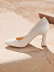 If you like these pumps, but with a shorter and thicker heel, take a look at the beautiful Mary bridal shoes , and if you were looking for them to be tied at the ankle, take a look at the Luna bridal shoes .