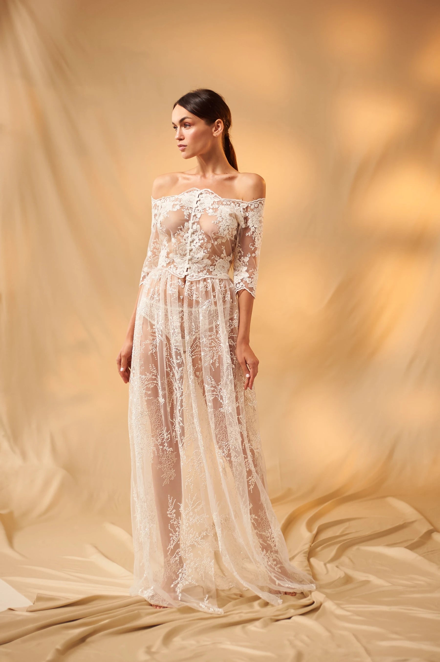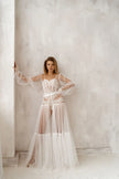 Todas ellas son unas preciosas batas para novia larga, confeccionadas a mano con el mejor tul, decorado con encaje.