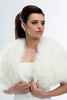 Esta preciosa estola de novia está elaborada con imitación de plumas de Marabú, y se cierra delicadamente por delante.