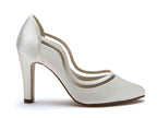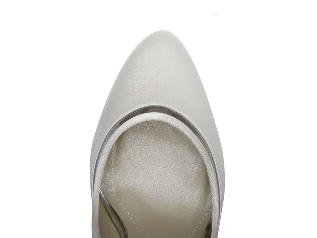 El color blanco de todos nuestros zapatos es blanco natural, también llamado blanco roto, ivory o marfil, que es el mismo blanco de novia de los vestidos de novia de las tiendas.